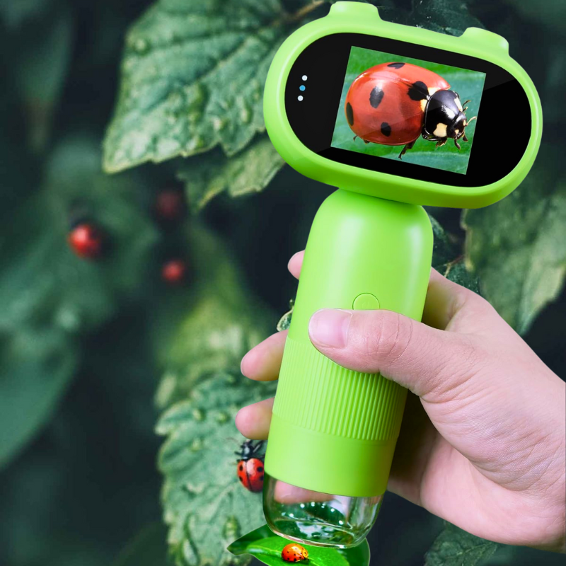 This bundle includes three items: a high-resolution 1000X digital handheld microscope with a 2-inch IPS screen, a durable insect catcher observation box with a magnifying lid, and the beautifully illustrated “Big Book of Bugs” hardcover book. It’s a complete educational starter set for young explorers.